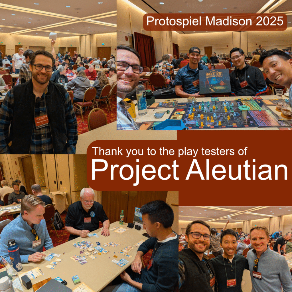It was a beautiful weekend in Madison and it is hard to believe it is my last day here and the final day of Protospiel. It was my first time attending one of these events, and I’m really grateful for all of the feedback that I got. Project Aleutian will definitely be a better game for it! It was also exciting playing other games of various types and in different stages of development.